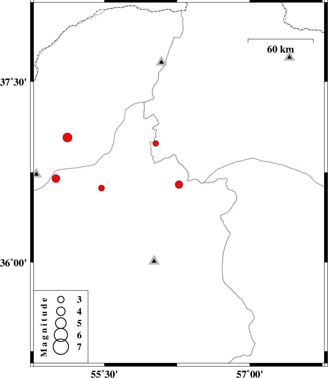 | 2014/06/06 | 12:54:29.6 | 17:24:29.6 | 36.7 | 55 | 17 | ML3.6 | Semnan Province, 31 km North of Shahrud |