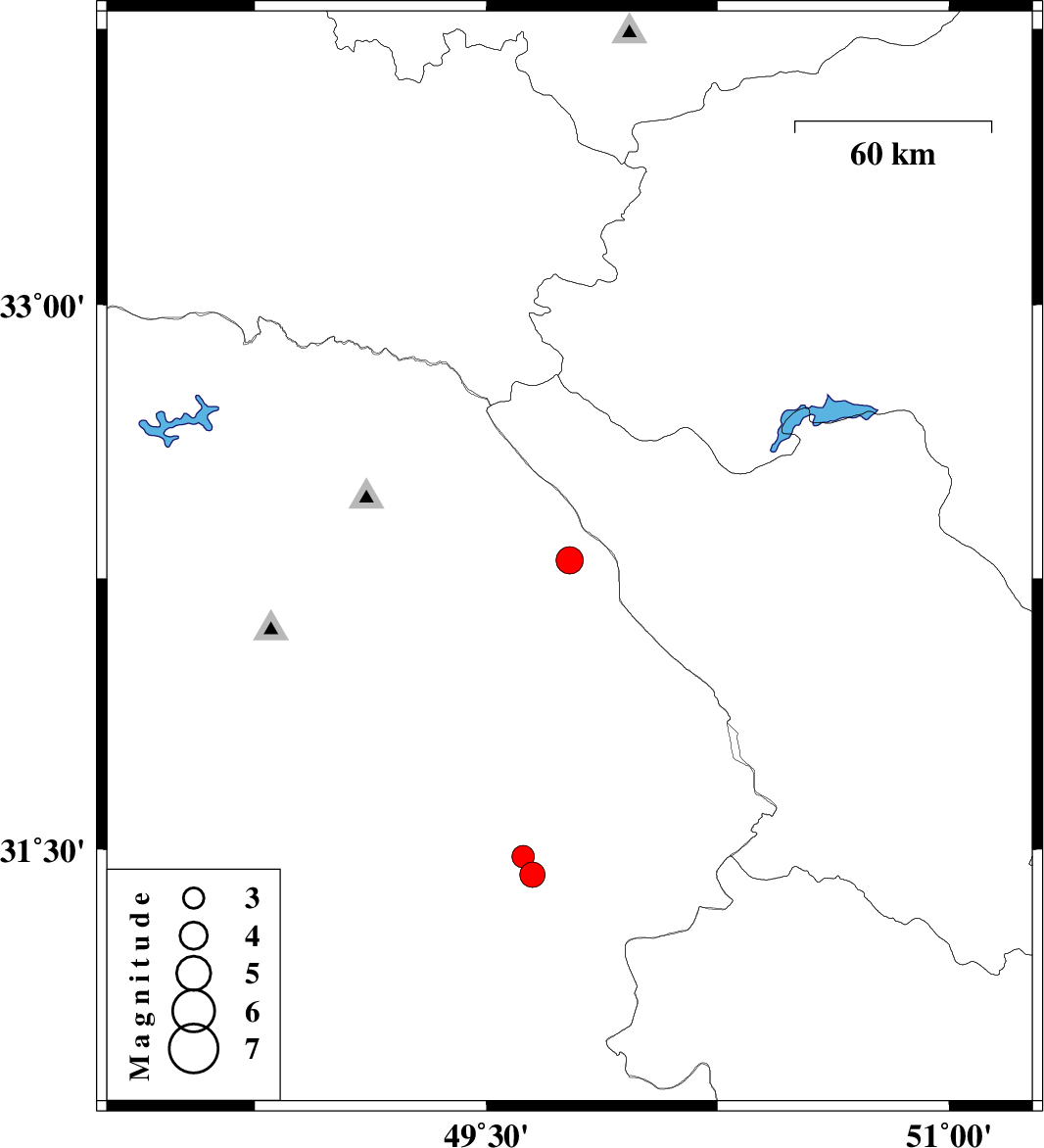 | 2014/07/04 | 16:02:21.6 | 20:32:21.6 | 31.48 | 49.62 | 18 | ML3.2 | Khoozestan Province, 23 km North of Ramhormoz |