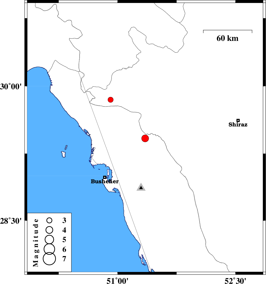 | 2014/07/16 | 09:40:15.9 | 14:10:15.9 | 29.42 | 51.35 | 15 | ML4.1 | Bushehr Province, 23 km North-East of Borazjan | ||