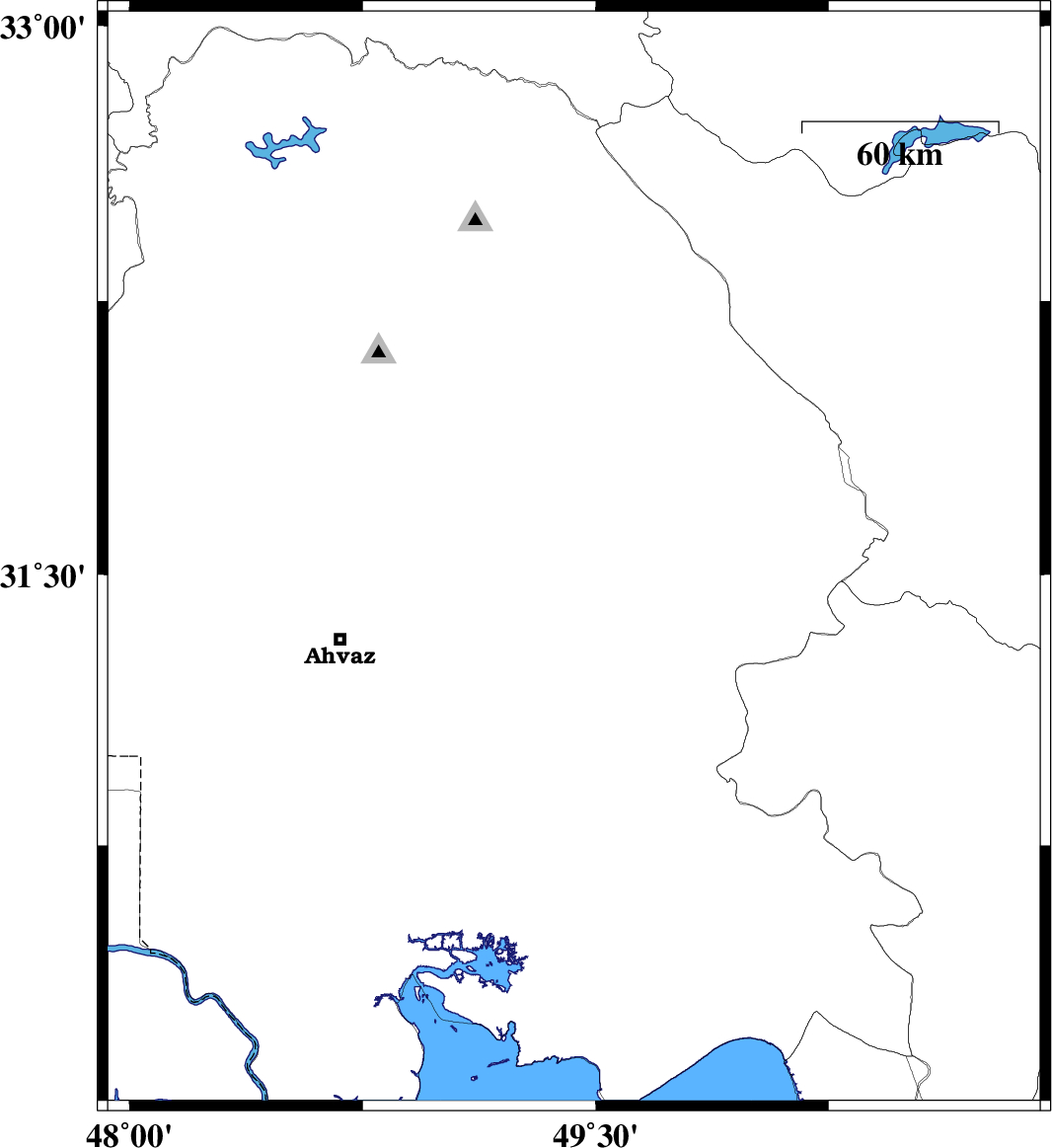 | 2014/07/23 | 00:02:20.5 | 04:32:20.5 | 32.85 | 48.28 | 14 | ML2.6 | Khoozestan Province, 44 km North of Andimeshk | ||