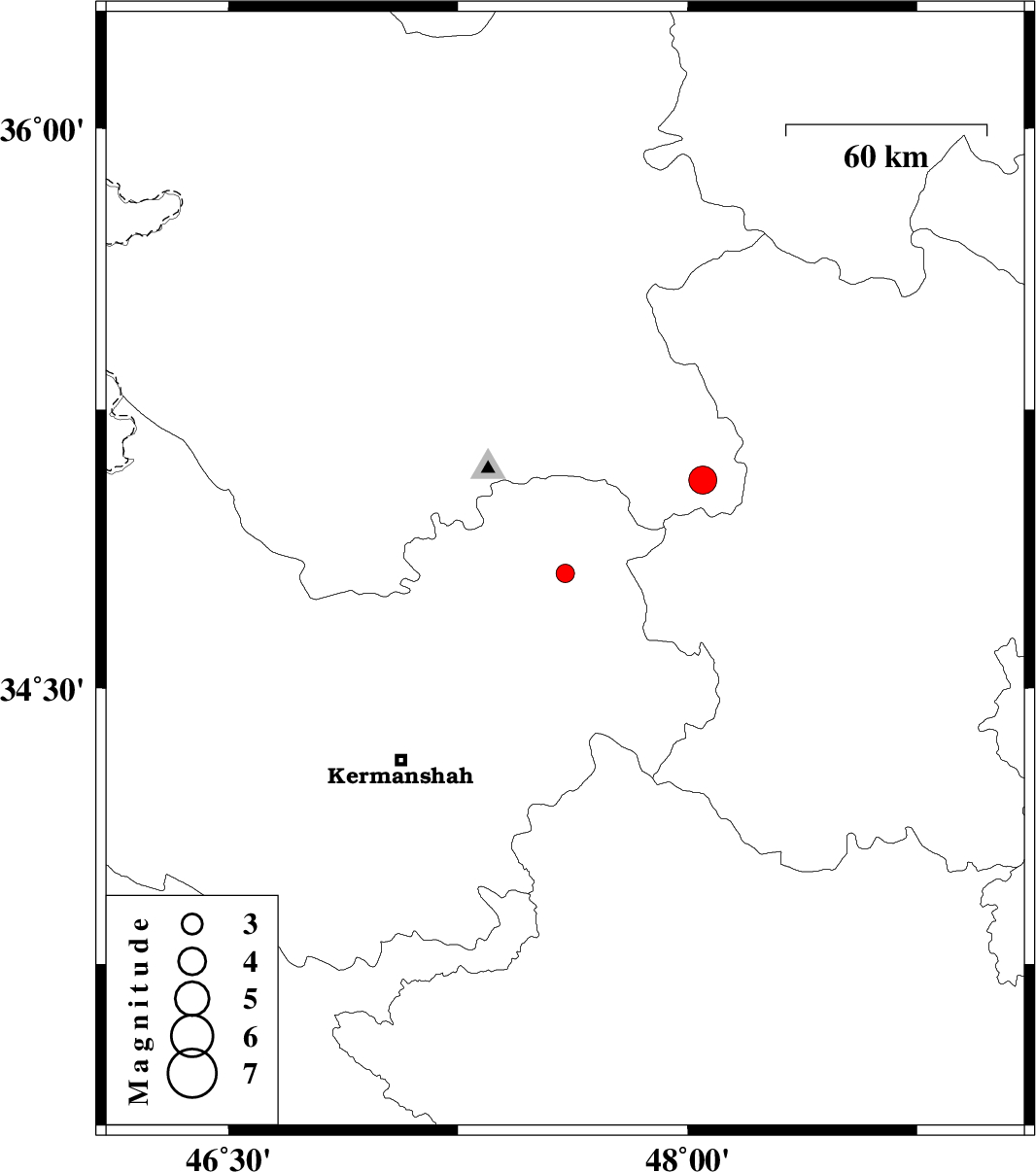 | 2014/08/07 | 07:42:13.8 | 12:12:13.8 | 34.81 | 47.6 | 18 | ML2.7 | Kermanshah Province, 3 km Sonqor | ||