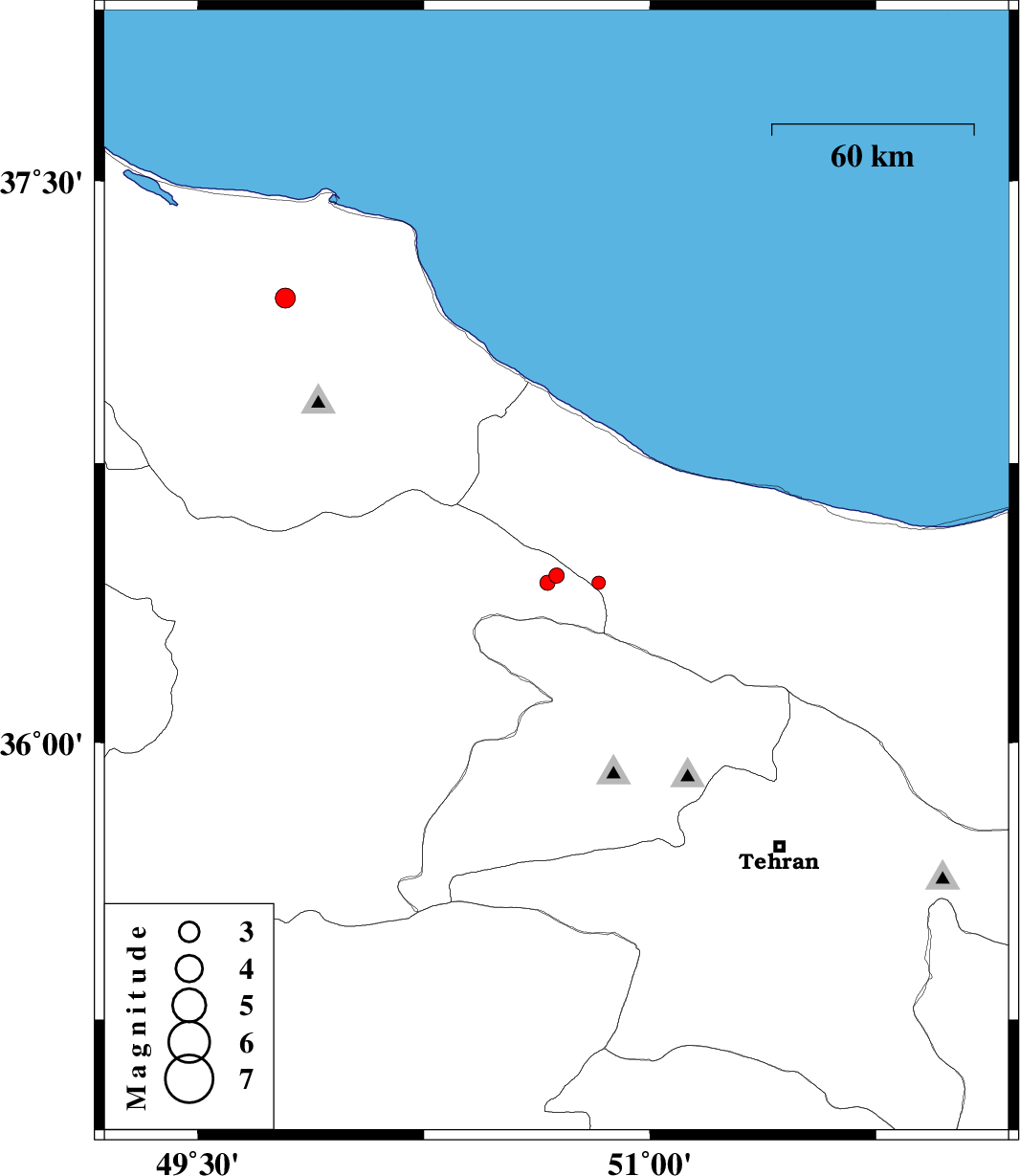 | 2014/07/13 | 01:29:14.0 | 05:59:14.0 | 36.43 | 50.83 | 14 | ML2 | Mazandaran Province, 44 km South of Tonekabon |