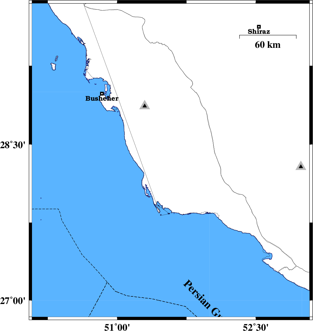 | 2014/08/15 | 14:48:05.1 | 19:18:05.1 | 28.34 | 51.58 | 14 | ML4.5 | Bushehr Province, 40 km South-East of Khormog | ||