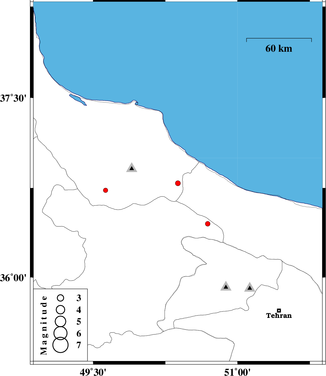 | 2014/08/11 | 15:57:49.4 | 20:27:49.4 | 36.45 | 50.69 | 18 | ML2.2 | Ghazvin Province, 50 km South of Ramsar |