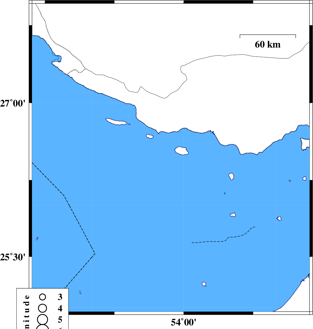 | 2014/08/16 | 12:52:40.3 | 17:22:40.3 | 26.46 | 53.86 | 18 | ML3.8 | Persian Gulf, 99 km West of Bandar-e lengeh |