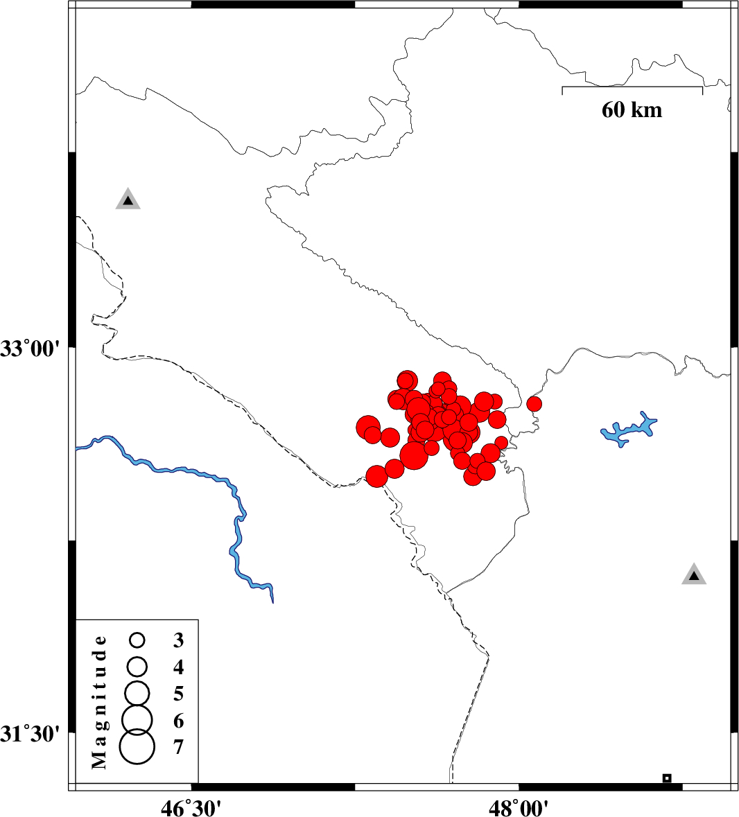 2014/08/17 15:35:13.9 20:05:13.9 32.7847.6918 ML3 Ilam Province, 27 km South-East of Abdanan