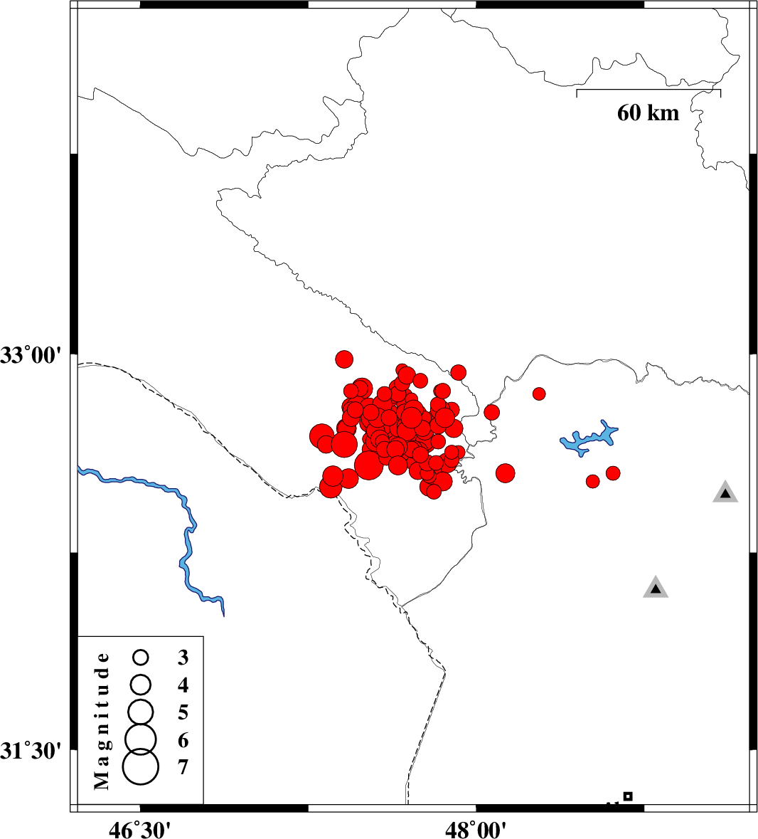 2014/08/19 00:28:55.7 04:58:55.7 32.7647.5614 ML4 Ilam Province, 21 km South of Abdanan