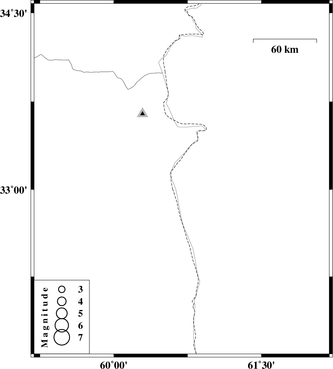 | 2014/08/21 | 13:18:51.5 | 17:48:51.5 | 33.08 | 60.69 | 16 | ML2.4 | 98 km North-East of Sarbisheh |