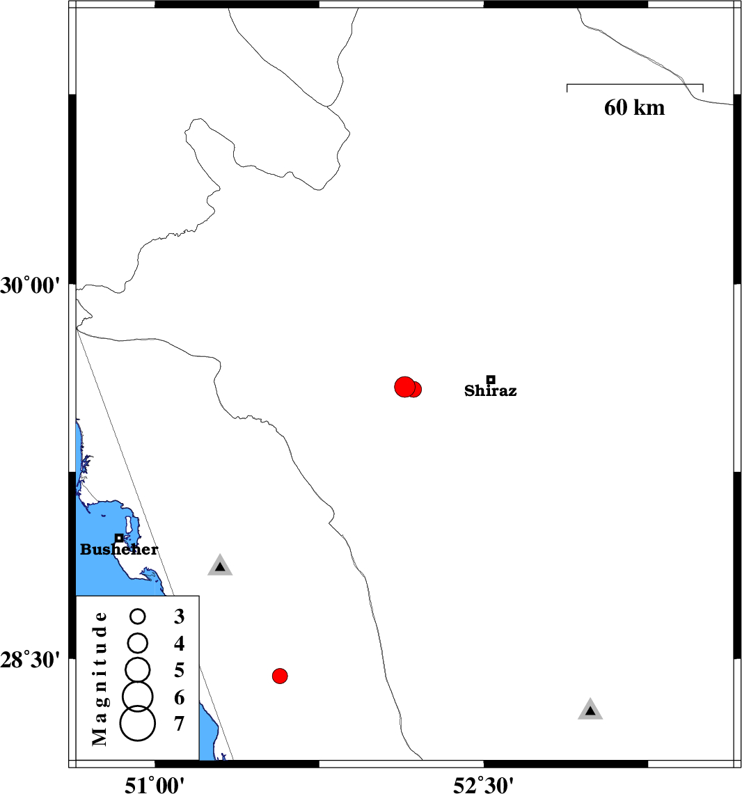 | 2014/08/27 | 09:09:31.2 | 13:39:31.2 | 29.58 | 52.18 | 18 | ML3.2 | Fars Province, 34 km West of Shiraz | ||