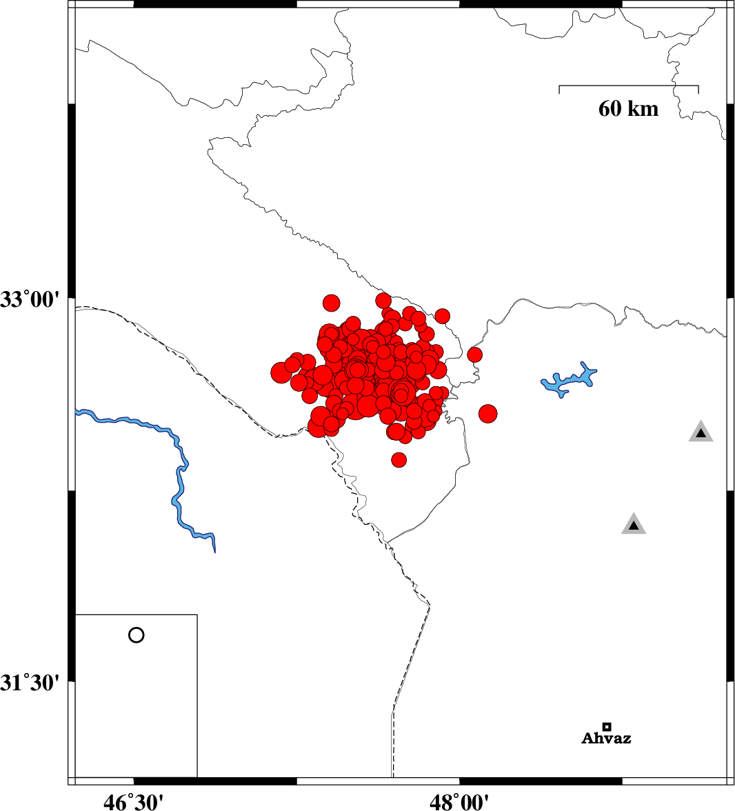 2014/08/29 15:19:57.7 19:49:57.7 32.6447.7318 ML3.1 Ilam Province, 45 km East of Dehloran