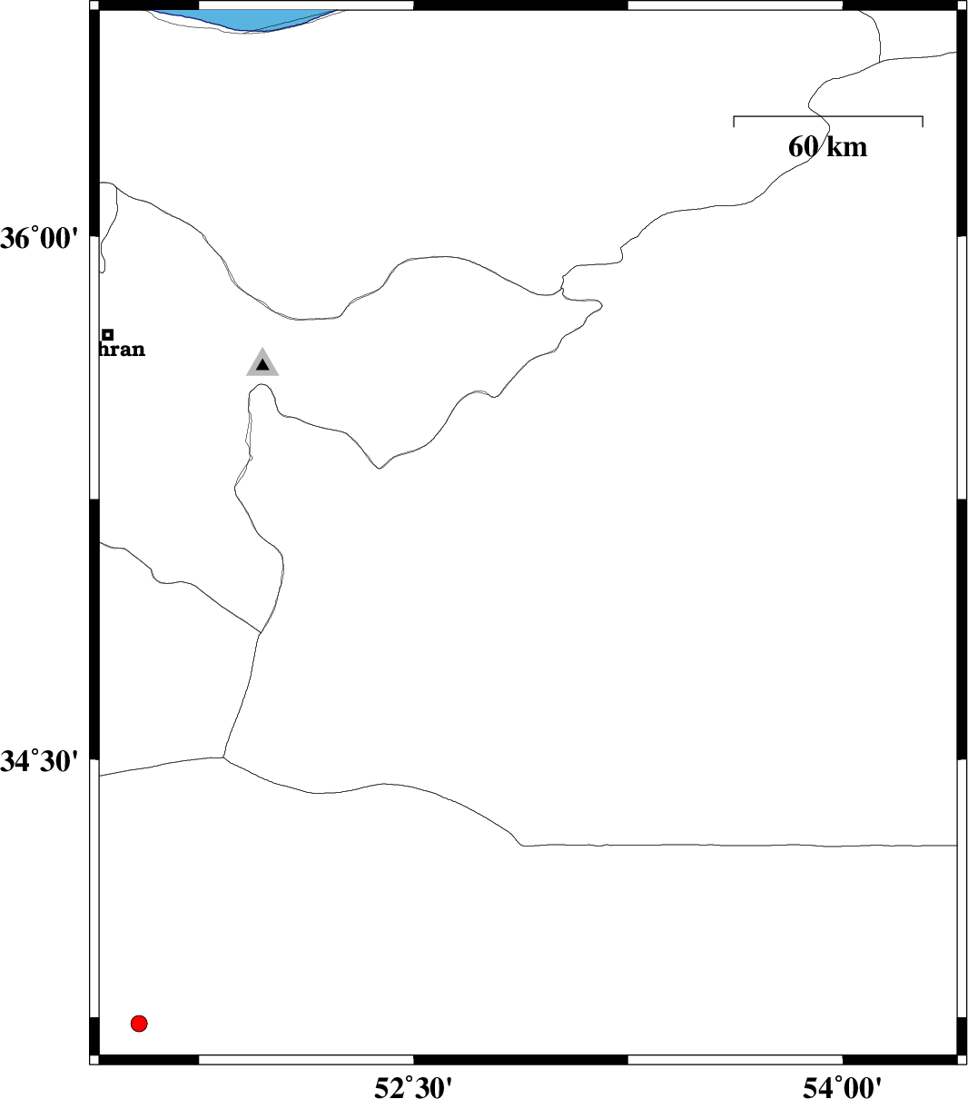 | 2014/08/16 | 23:55:56.9 | 04:25:56.9 | 36.02 | 52.3 | 6 | ML4.2 | Mazandaran Province, 50 km South of Amol |