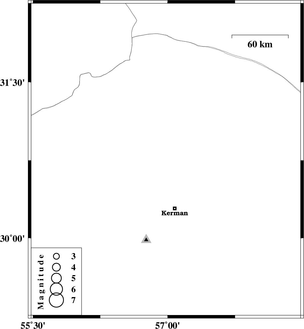 | 2014/09/09 | 04:40:38.1 | 09:10:38.1 | 30.75 | 56.98 | 18 | ML2.7 | Kerman Province, 40 km East of Zarand |