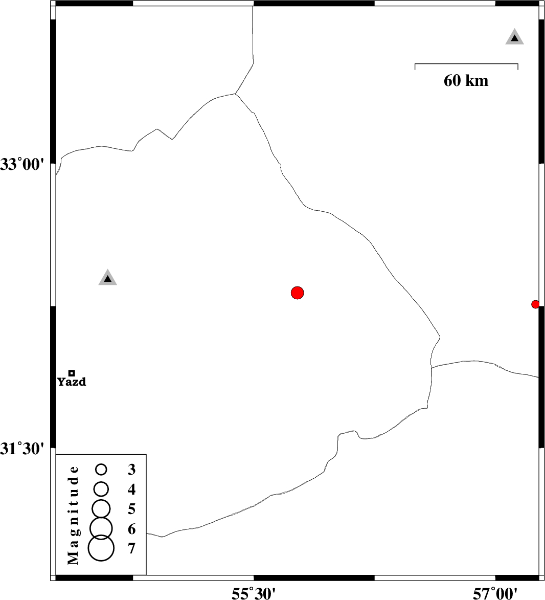 | 2014/09/12 | 12:00:29.4 | 16:30:29.4 | 32.32 | 55.77 | 18 | ML3.5 | Yazd Province, 87 km North-East of Bafq | ||