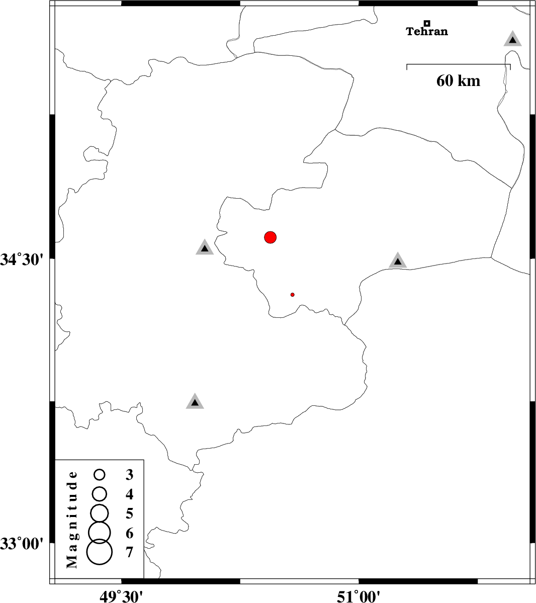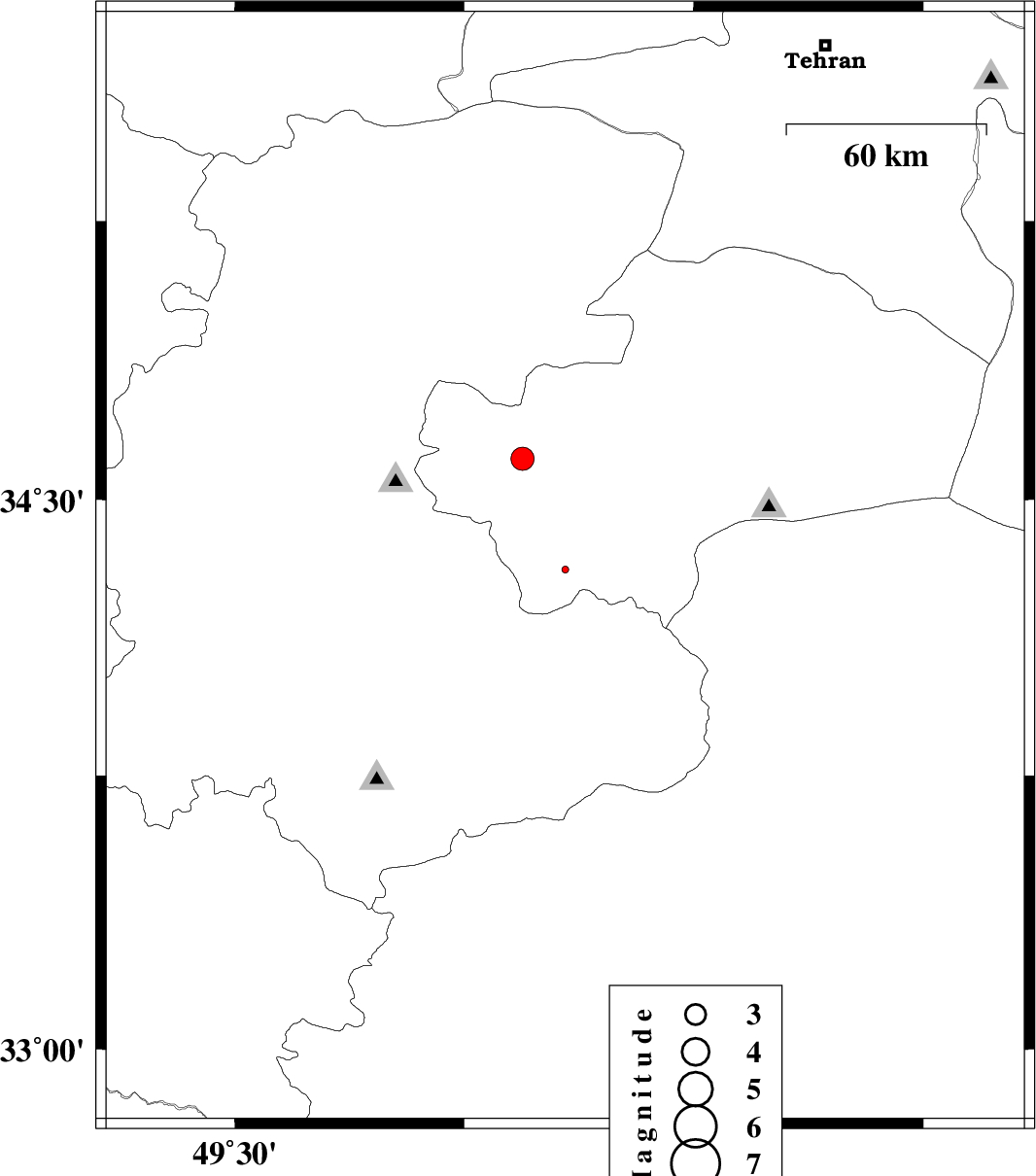 | 2014/09/19 | 07:33:31.5 | 12:03:31.5 | 34.31 | 50.58 | 15 | ML1 | Qom Province, 36 km North of Delijan | ||