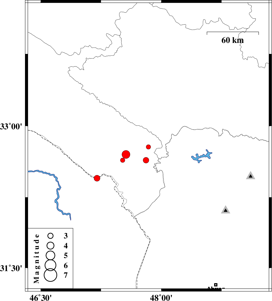 | 2014/09/28 | 00:00:40.1 | 03:30:40.1 | 32.7 | 47.56 | 14 | ML4.5 | Ilam Province, 28 km East of Dehloran | ||