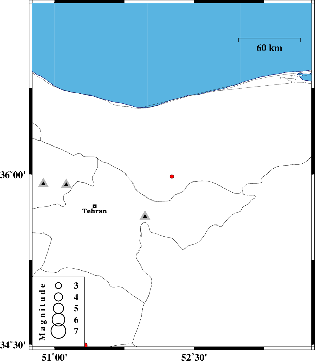 | 2014/10/05 | 09:43:43.9 | 13:13:43.9 | 35.98 | 52.26 | 6 | ML1.8 | Mazandaran Province, 33 km North-East of Damavand | ||