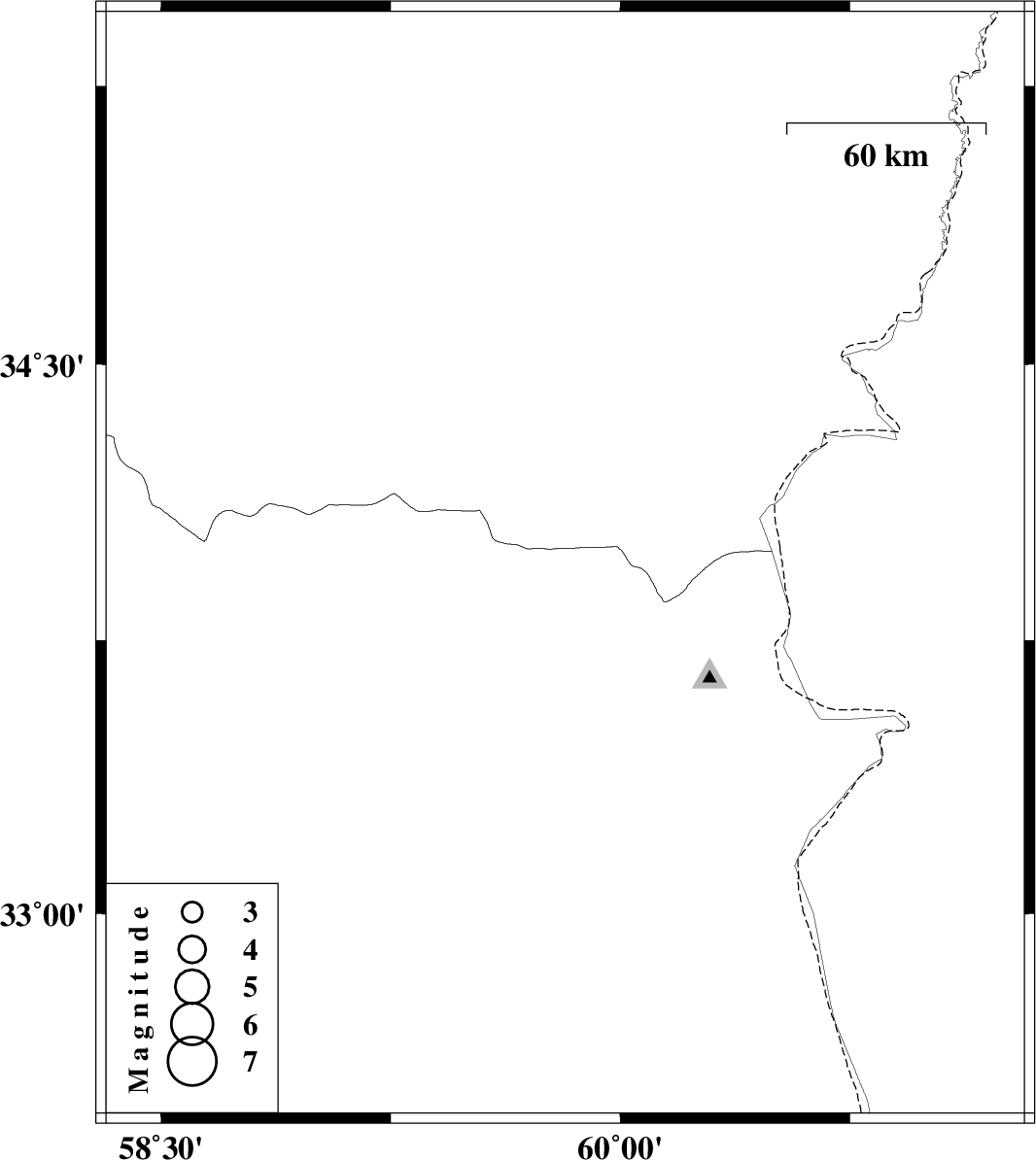 | 2014/10/16 | 06:00:02.9 | 09:30:02.9 | 33.95 | 59.82 | 14 | ML2.9 | 61 km North-East of Qaen |