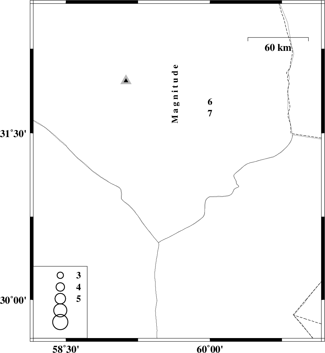 | 2014/10/20 | 15:08:41.0 | 18:38:41.0 | 31.15 | 59.66 | 14 | ML2.9 | Khorasan(south) Province, 56 km South-West of Nehbandan |
