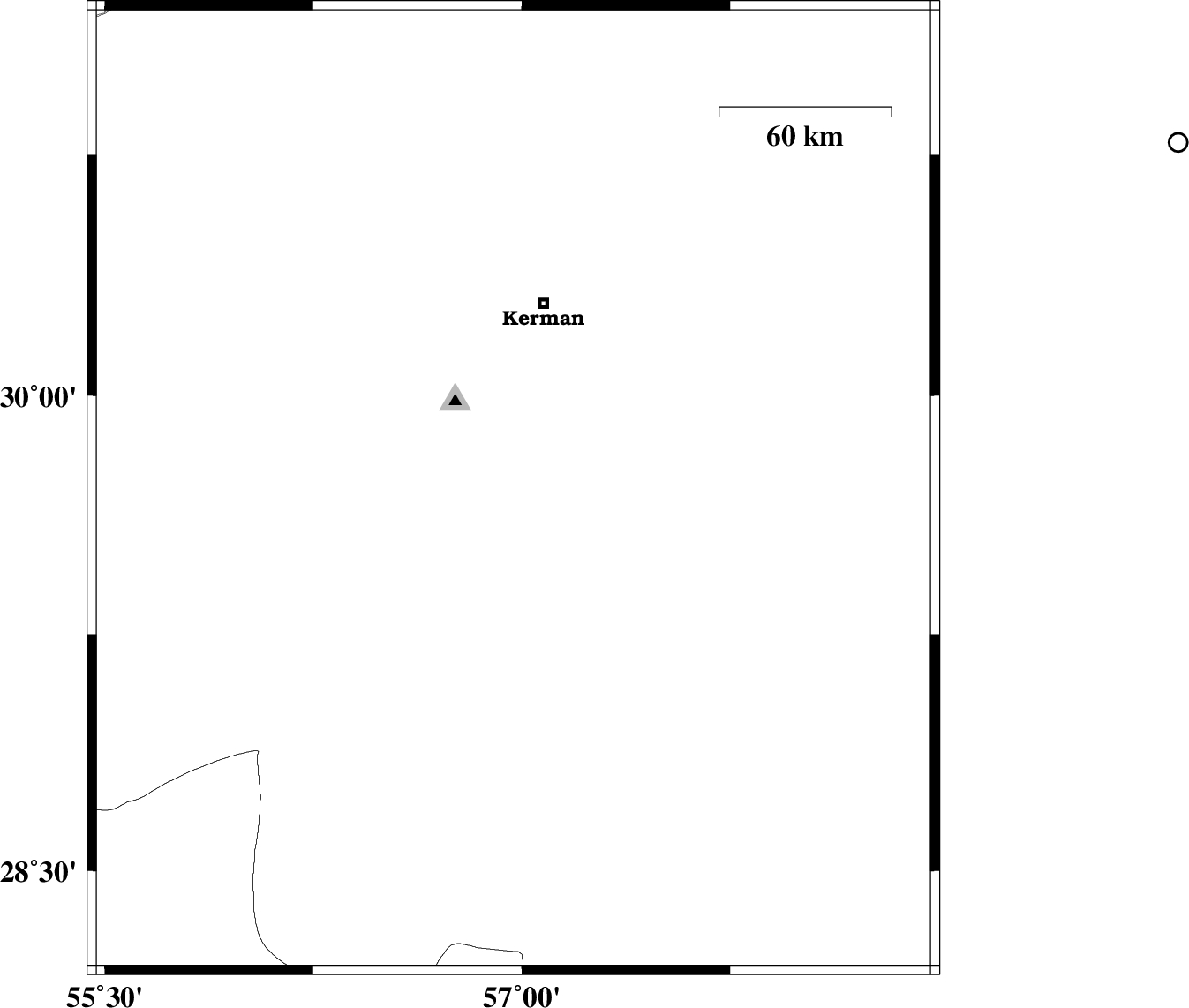 | 2014/10/22 | 12:02:18.2 | 15:32:18.2 | 29.7 | 56.97 | 14 | ML3.5 | Kerman Province, 46 km South-East of Bardsir | ||