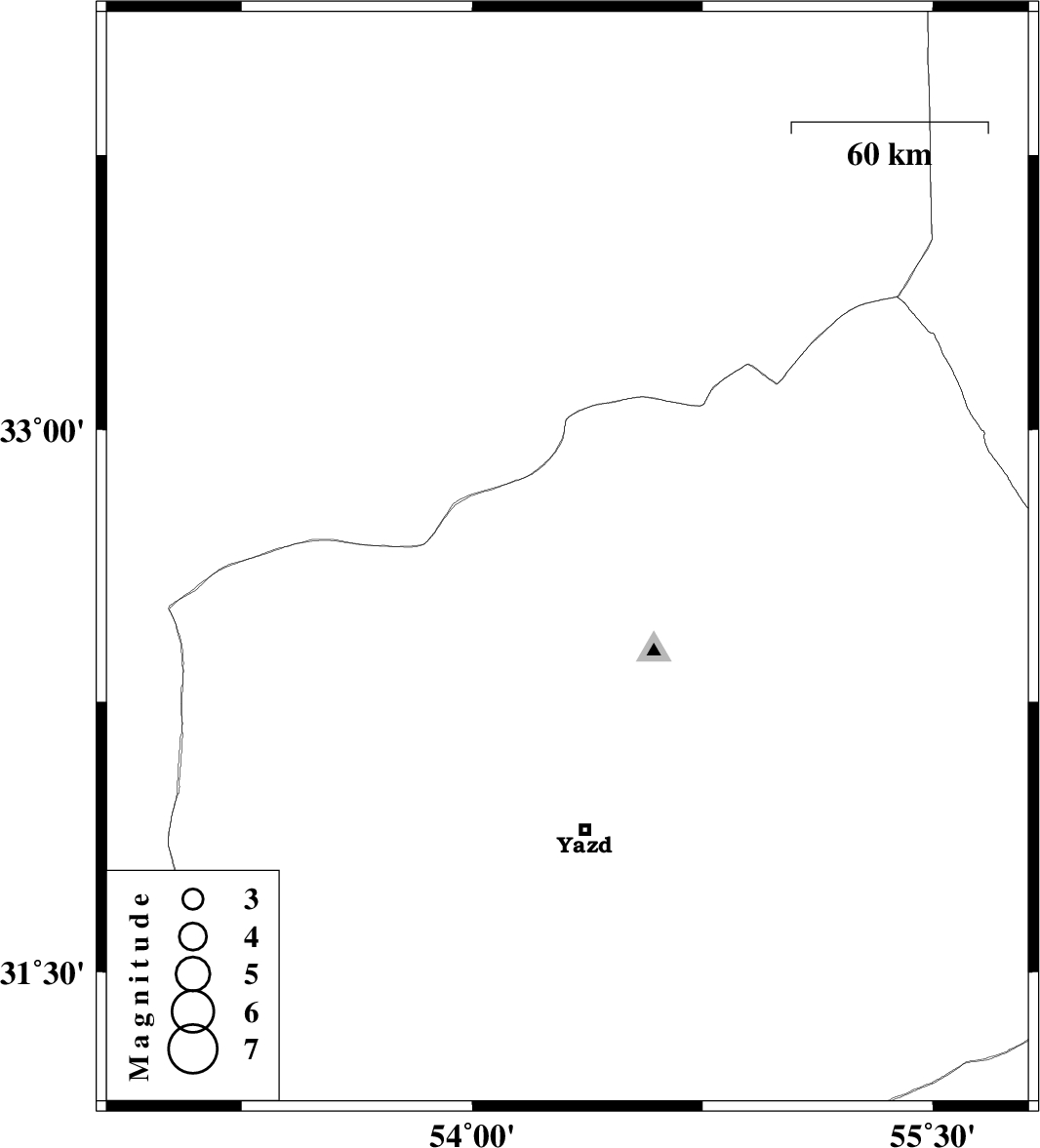 | 2014/10/23 | 02:18:54.3 | 05:48:54.3 | 32.64 | 54.31 | 15 | ML3.1 | Yazd Province, 45 km North-East of Ardakan |