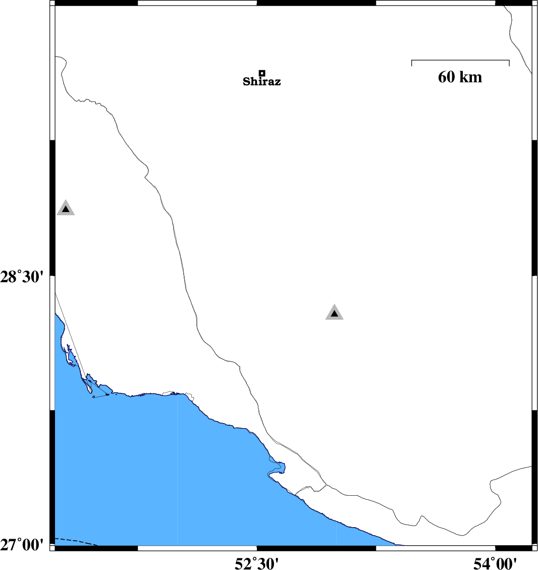 | 2014/10/25 | 15:31:30.3 | 19:01:30.3 | 28.49 | 52.73 | 14 | ML4 | Fars Province, 30 km West of Qir va Karzin |