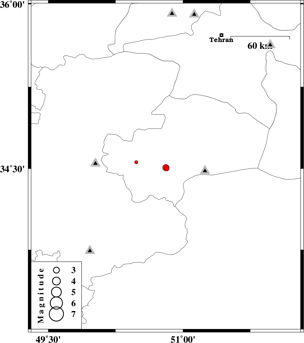 | 2014/10/22 | 07:18:50.1 | 10:48:50.1 | 34.56 | 50.48 | 14 | ML1.7 | Qom Province, 37 km West of Qom |