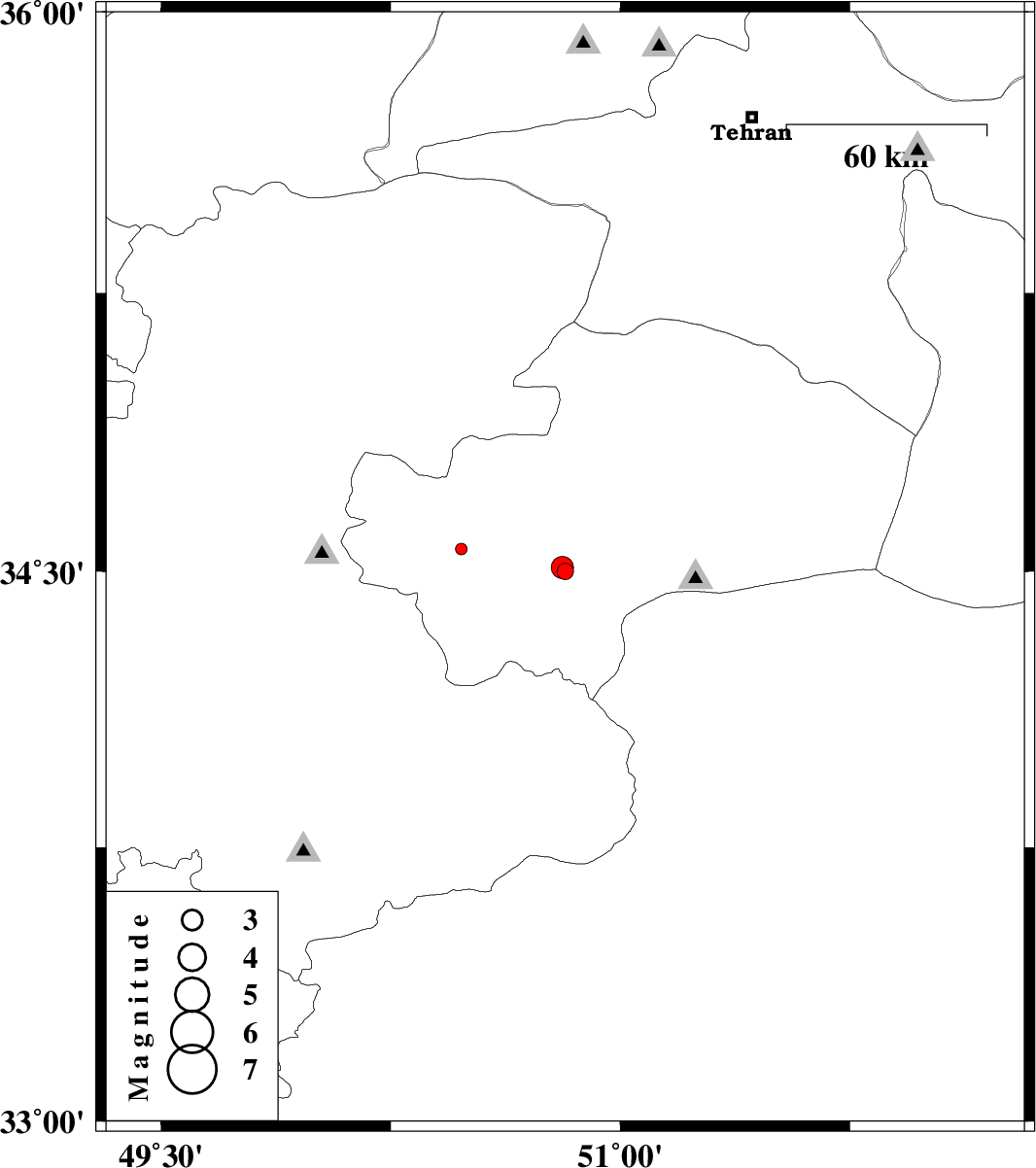 | 2014/10/22 | 07:18:50.1 | 10:48:50.1 | 34.56 | 50.48 | 14 | ML1.7 | Qom Province, 37 km West of Qom |