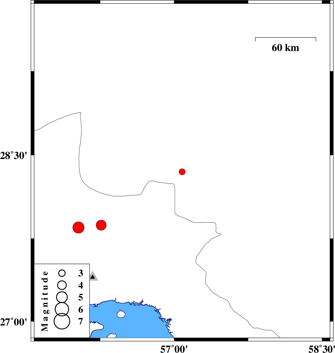 | 2014/11/11 | 10:05:43.1 | 13:35:43.1 | 27.87 | 56.26 | 18 | ML4.6 | Hormozgan Province, 76 km North of Bandar-e abbas | ||