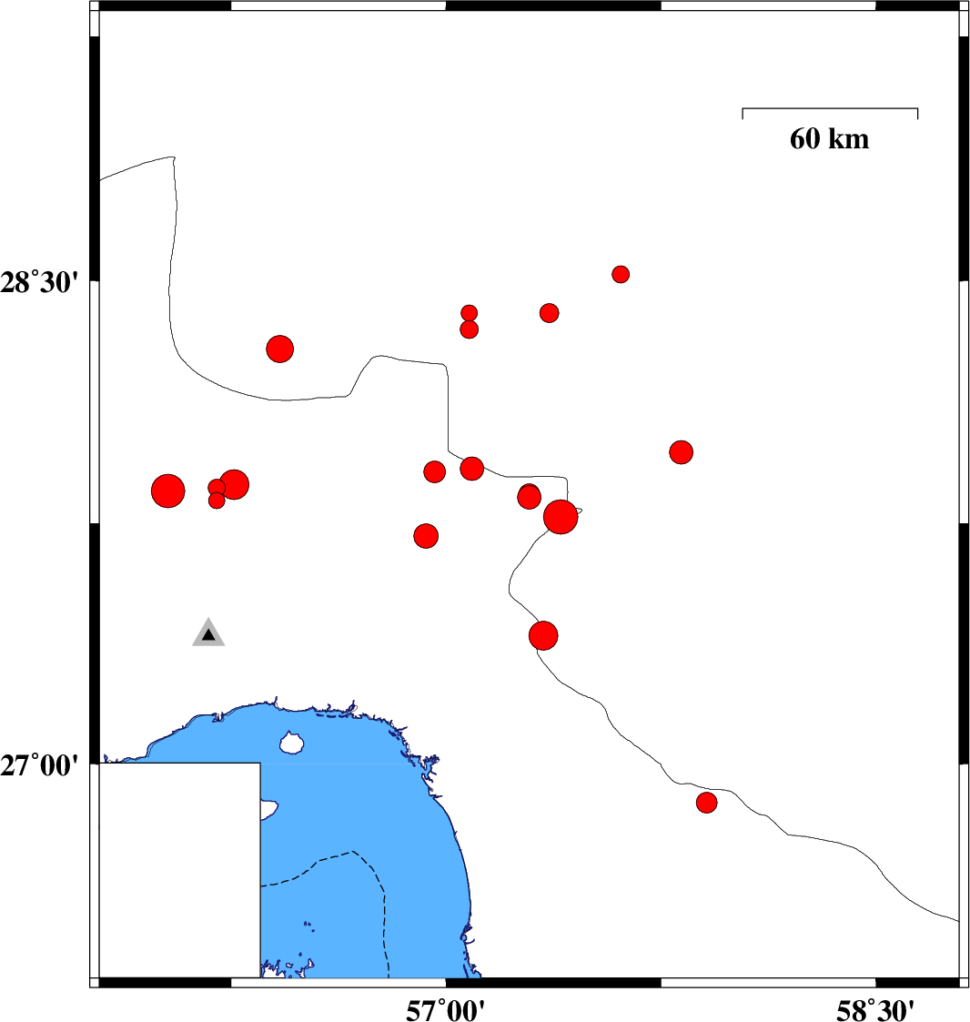 Hormozgan Province, 56 km North-West of Dehbarez | |