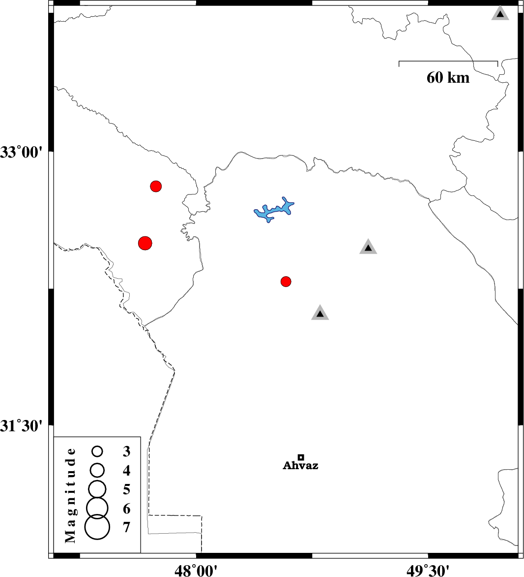 | 2014/11/19 | 21:18:19.6 | 00:48:19.6 | 32.29 | 48.58 | 16 | ML2.9 | Khoozestan Province, 20 km East of Dezful | ||