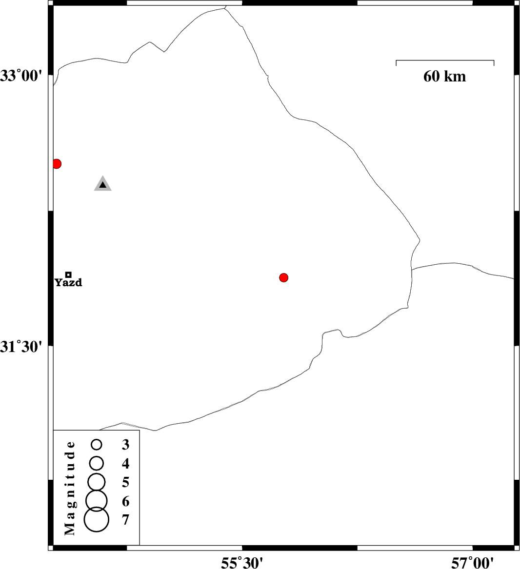 | 2014/11/20 | 08:57:48.6 | 12:27:48.6 | 31.88 | 55.77 | 14 | ML2.5 | Yazd Province, 47 km North-East of Bafq | ||