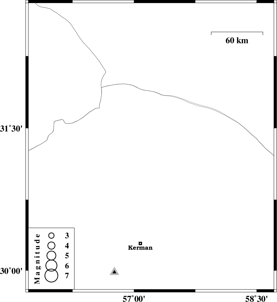 | 2014/12/04 | 10:18:53.6 | 13:48:53.6 | 31.3 | 57.21 | 18 | ML3.1 | Kerman Province, 38 km East of Ravar |