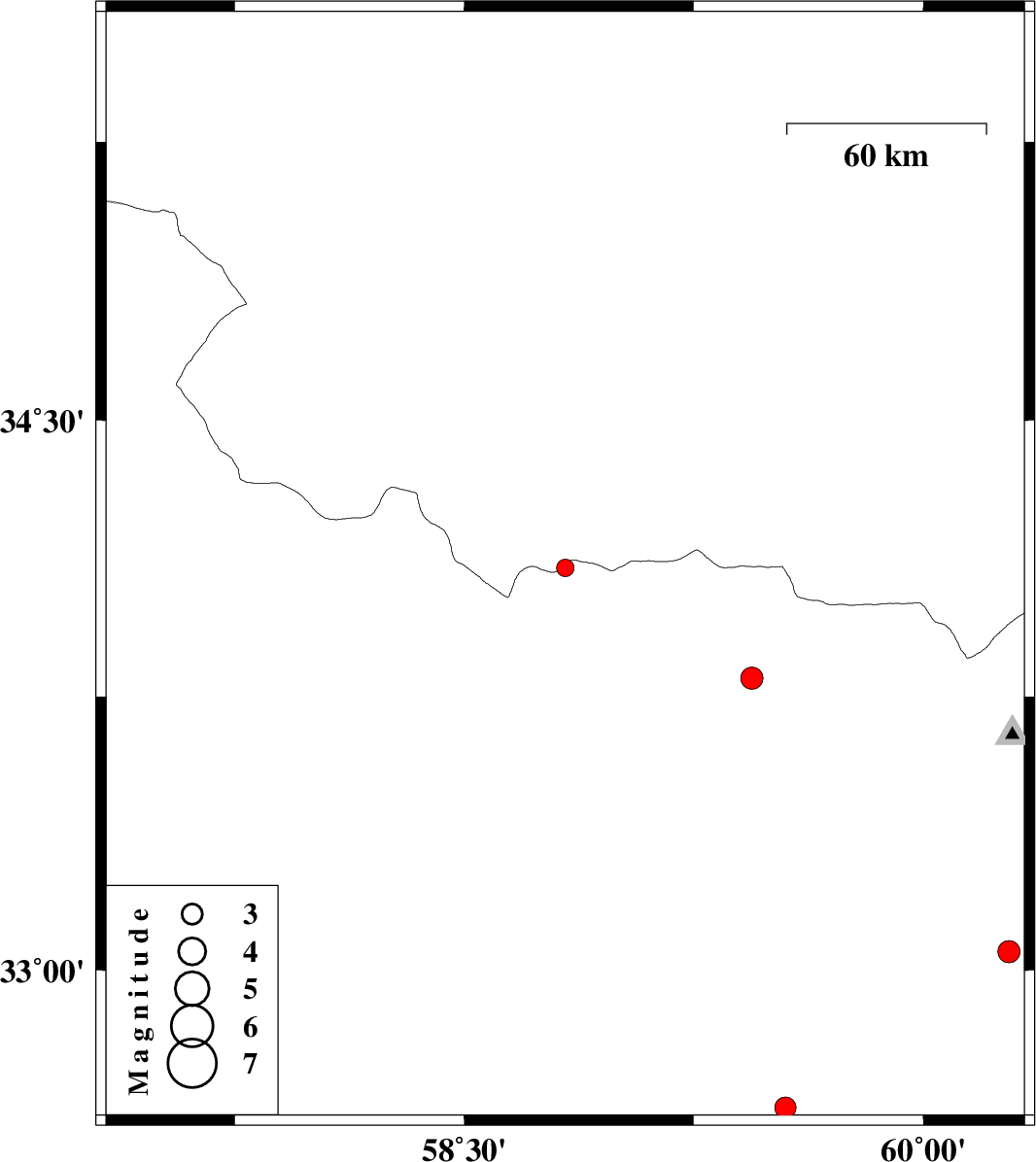 | 2014/11/16 | 20:16:59.7 | 23:46:59.7 | 33.8 | 59.44 | 14 | ML3.2 | 23 km East of Qaen | ||