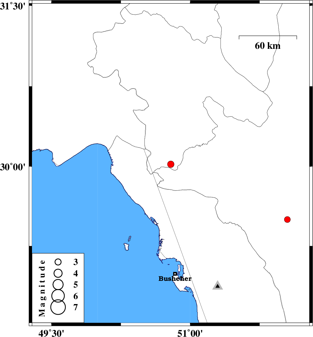 | 2014/12/03 | 09:41:26.2 | 13:11:26.2 | 29.5 | 52.05 | 15 | ML2.9 | Fars Province, 40 km South-East of Kazerun |