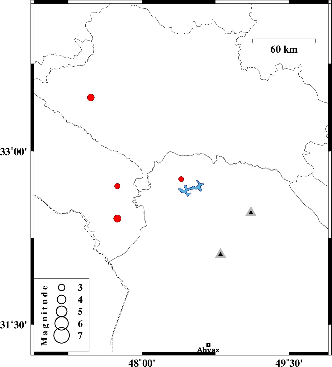 | 2014/12/09 | 00:10:06.8 | 03:40:06.8 | 32.76 | 48.4 | 14 | ML2.4 | Khoozestan Province, 34 km North of Andimeshk | ||