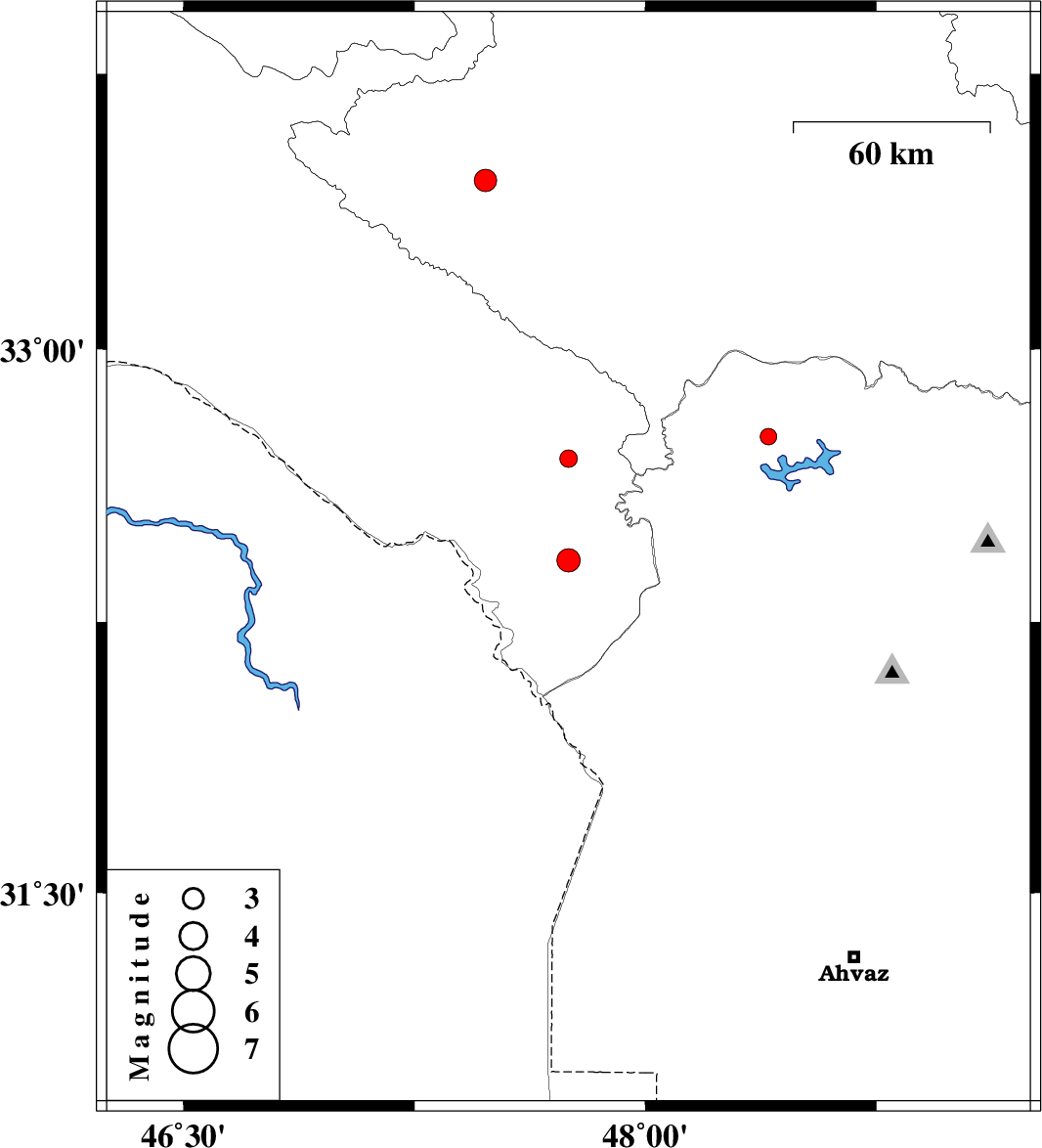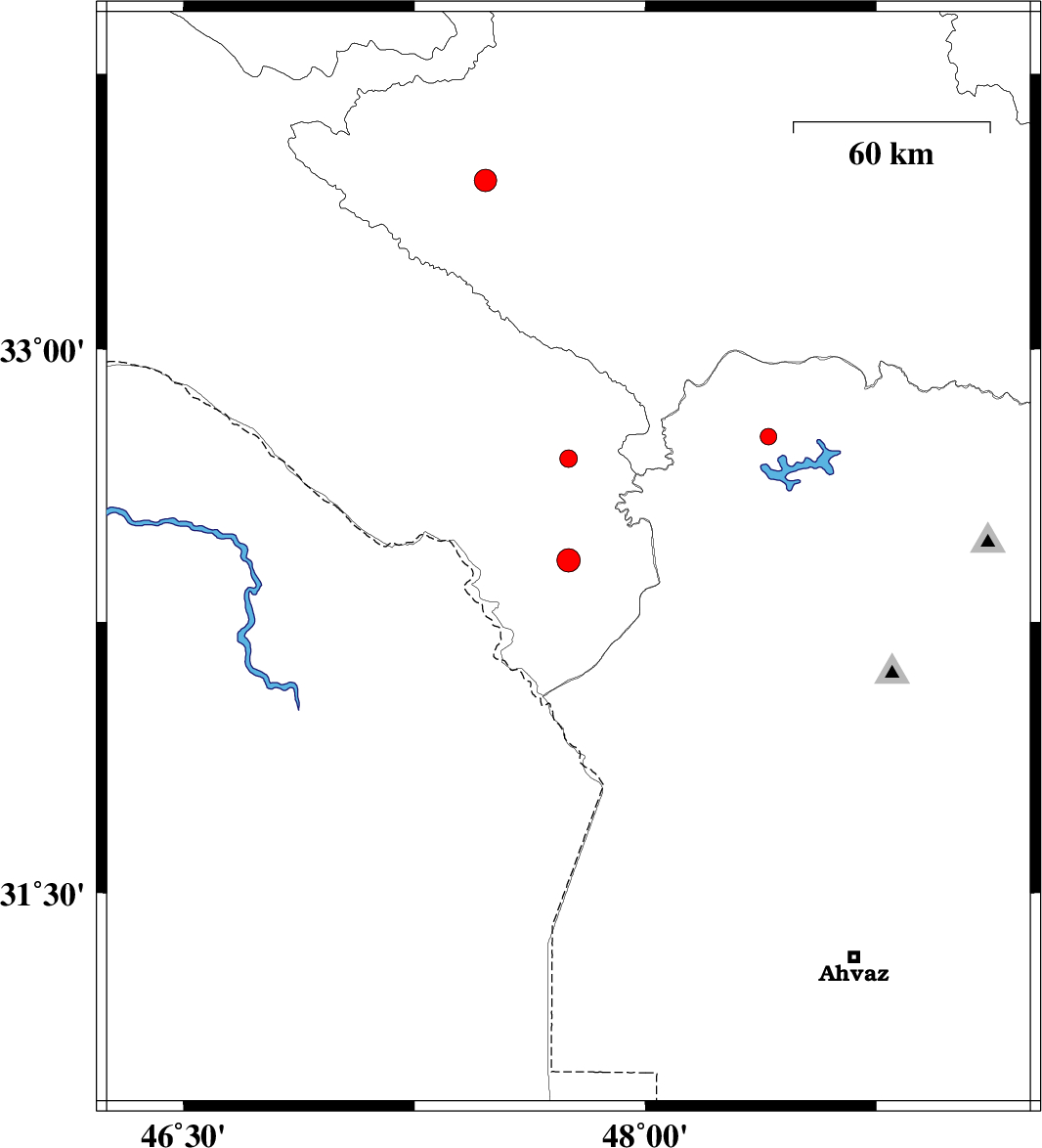 | 2014/12/09 | 00:10:06.8 | 03:40:06.8 | 32.76 | 48.4 | 14 | ML2.4 | Khoozestan Province, 34 km North of Andimeshk | ||