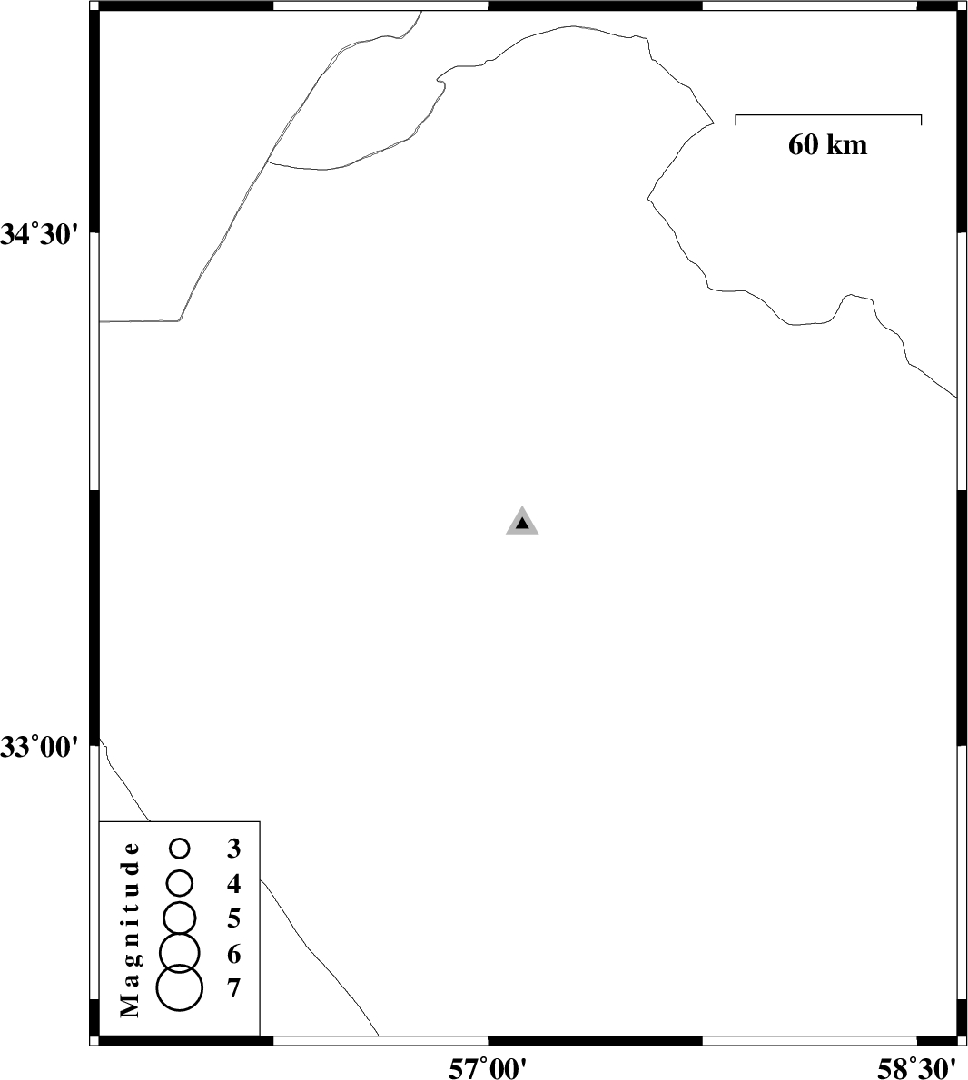 | 2014/12/13 | 05:17:56.5 | 08:47:56.5 | 33.64 | 57.14 | 12 | ML3.1 | Yazd Province, 20 km East of Tabas |