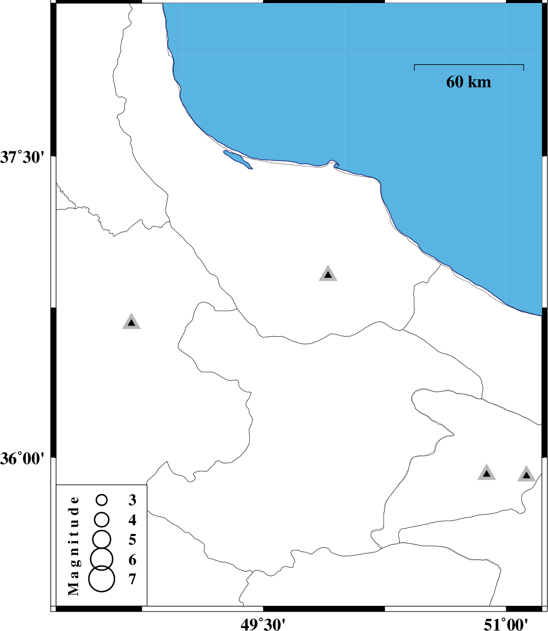 | 2014/12/16 | 15:49:11.3 | 19:19:11.3 | 36.75 | 49.72 | 15 | ML3.1 | Gilan Province, 27 km East of Rudbar |