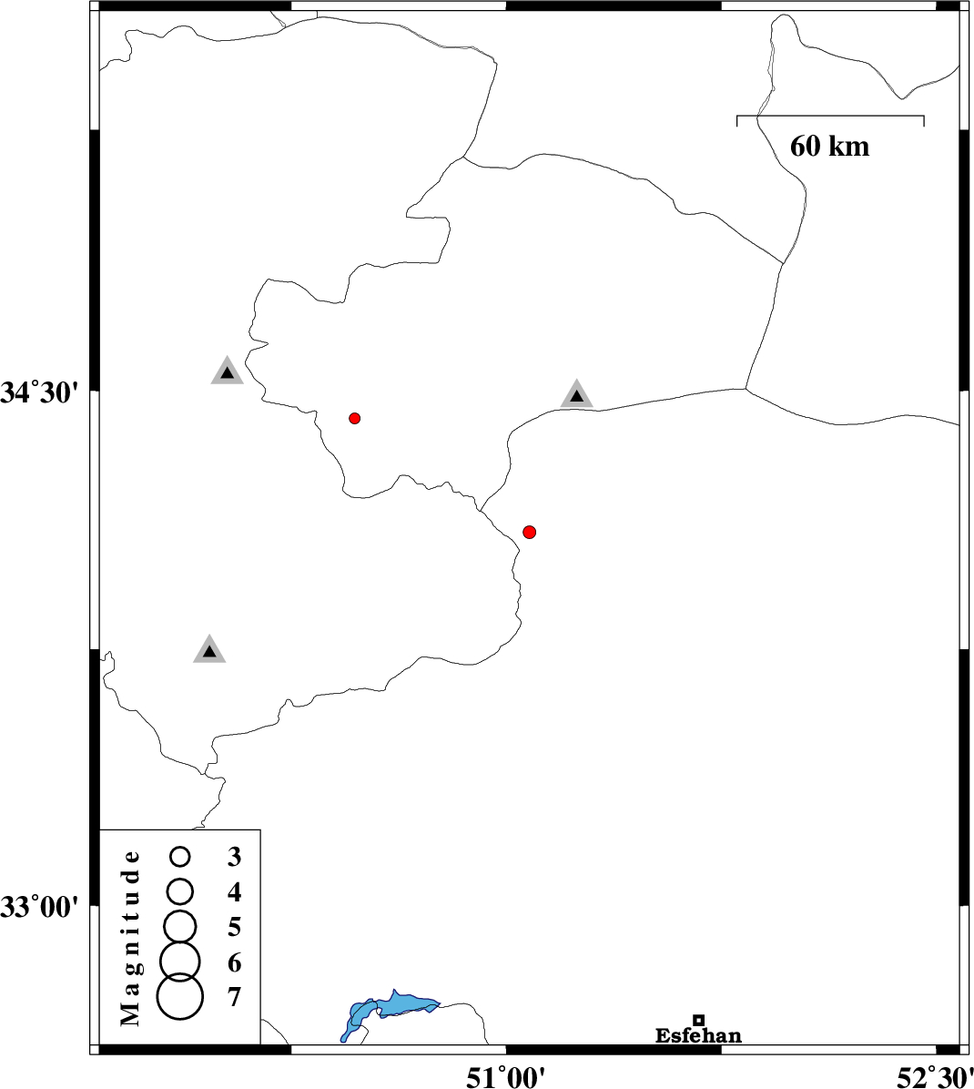 | 2014/12/16 | 23:34:25.2 | 03:04:25.2 | 34.09 | 51.08 | 15 | ML2 | Esfahan Province, 36 km West of Aran va bidgol | ||