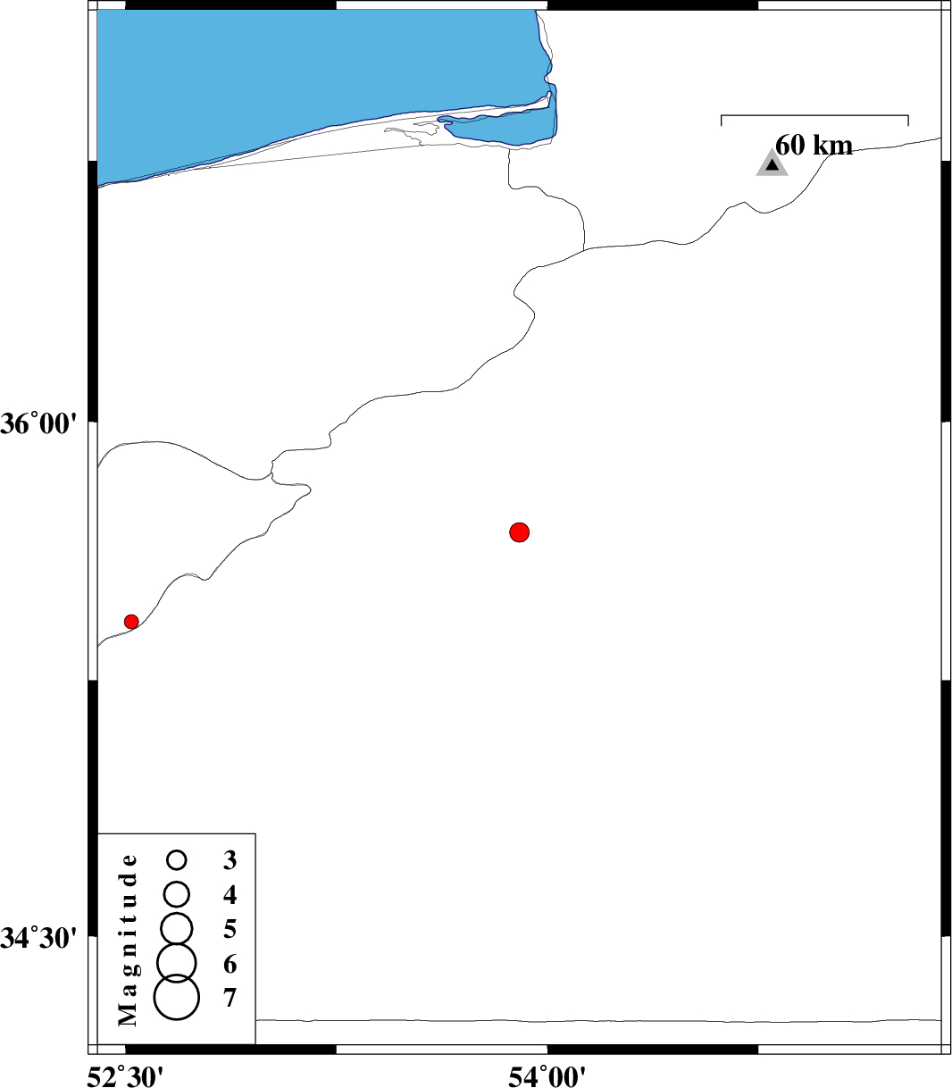 | 2014/12/24 | 02:16:36.9 | 05:46:36.9 | 35.68 | 53.9 | 14 | ML3.1 | Semnan Province, 47 km North-East of Semnan | ||
