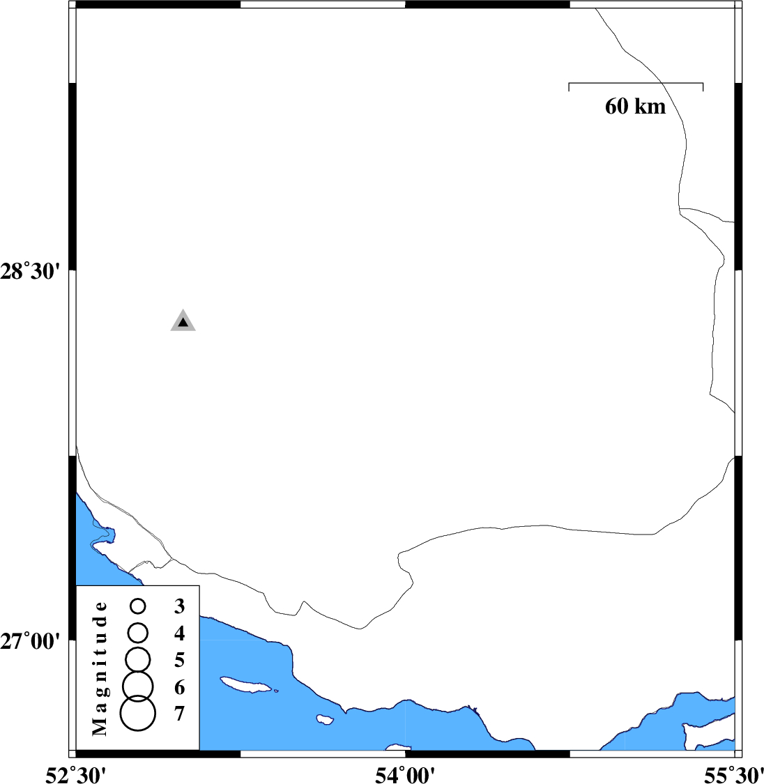 | 2014/12/27 | 12:00:16.9 | 15:30:16.9 | 28.05 | 54 | 15 | ML3.5 | Fars Province, 53 km North-West of Lar |