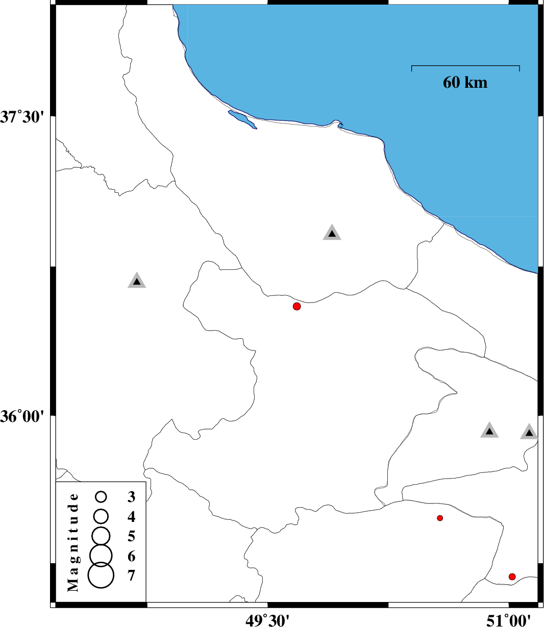 | 2014/12/30 | 02:00:58.4 | 05:30:58.4 | 36.55 | 49.68 | 35 | ML2.1 | Ghazvin Province, 54 km North of Takestan | ||