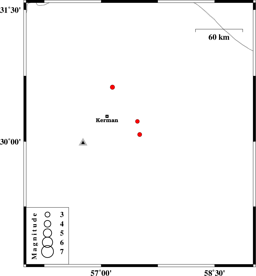 | 2014/12/28 | 10:15:25.6 | 13:45:25.6 | 30.62 | 57.15 | 18 | ML2.7 | Kerman Province, 38 km North of Kerman |