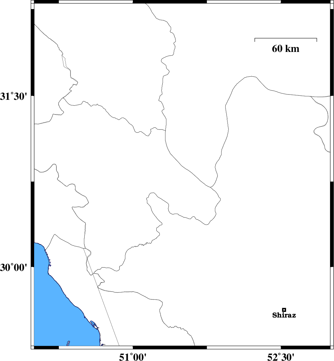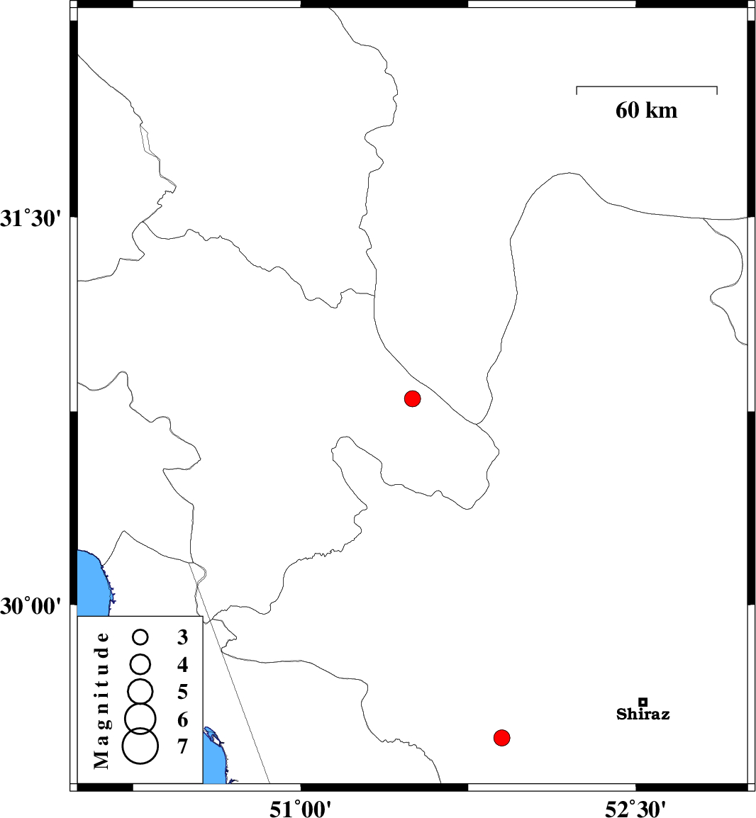| 2014/12/26 | 19:51:46.4 | 23:21:46.4 | 29.48 | 51.9 | 6 | ML3.3 | Fars Province, 29 km South-East of Kazerun |