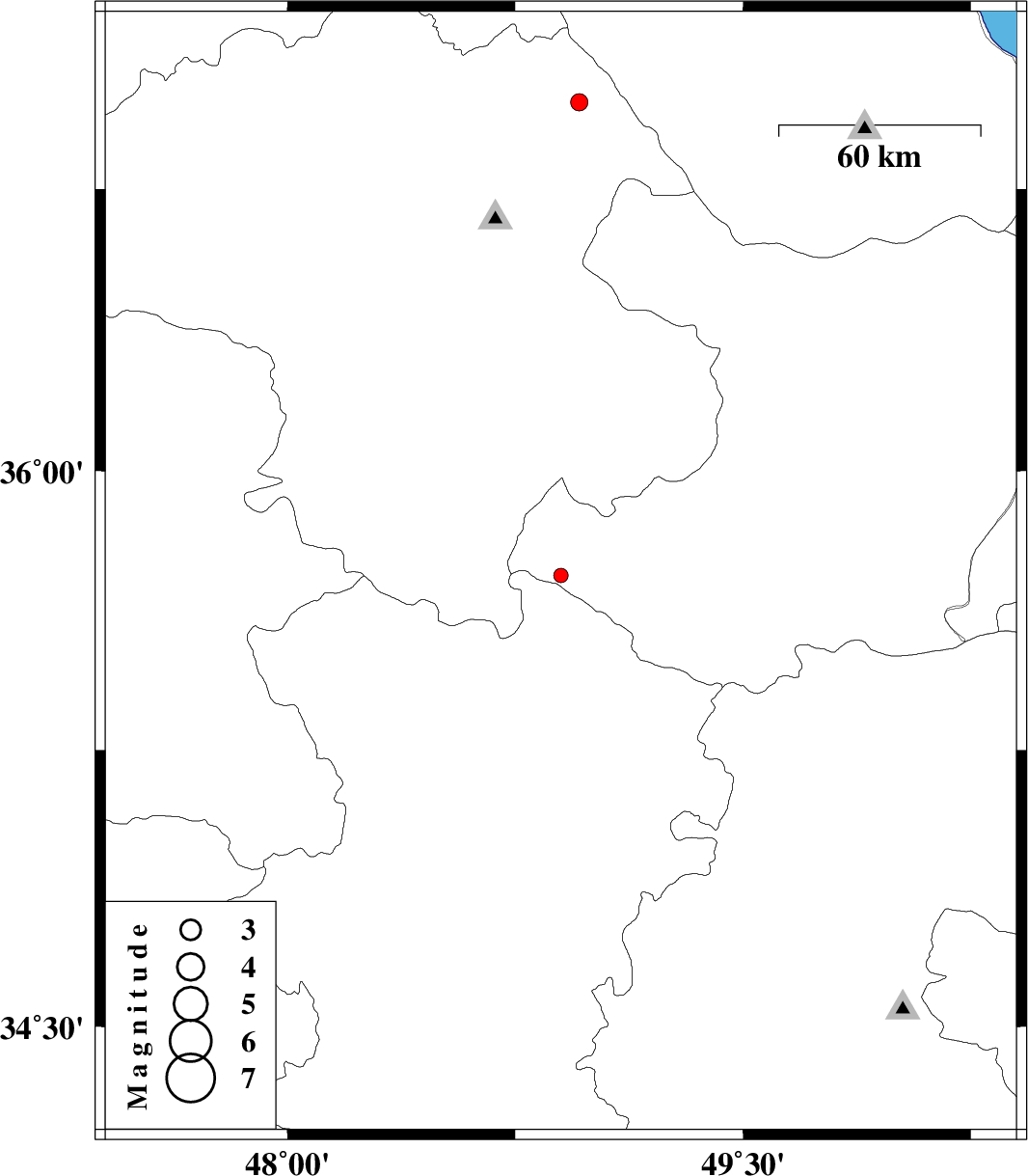 | 2015/01/09 | 12:48:11.8 | 16:18:11.8 | 36.98 | 48.96 | 8 | ML2.5 | Zanjan Province, 7 km Abbar |