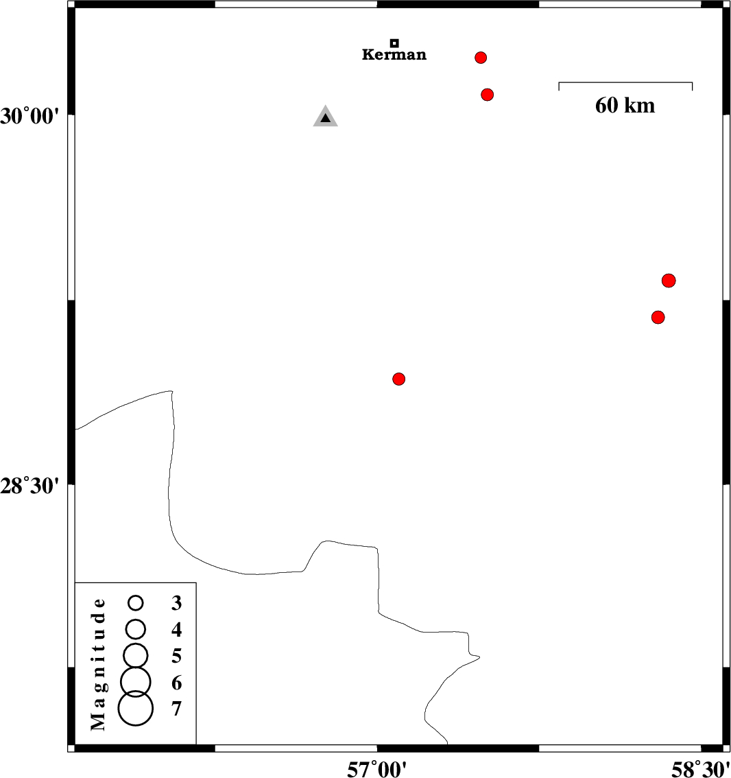 | 2014/12/13 | 02:18:05.6 | 05:48:05.6 | 29.18 | 58.3 | 15 | ML2.7 | Kerman Province, 9 km Bam |