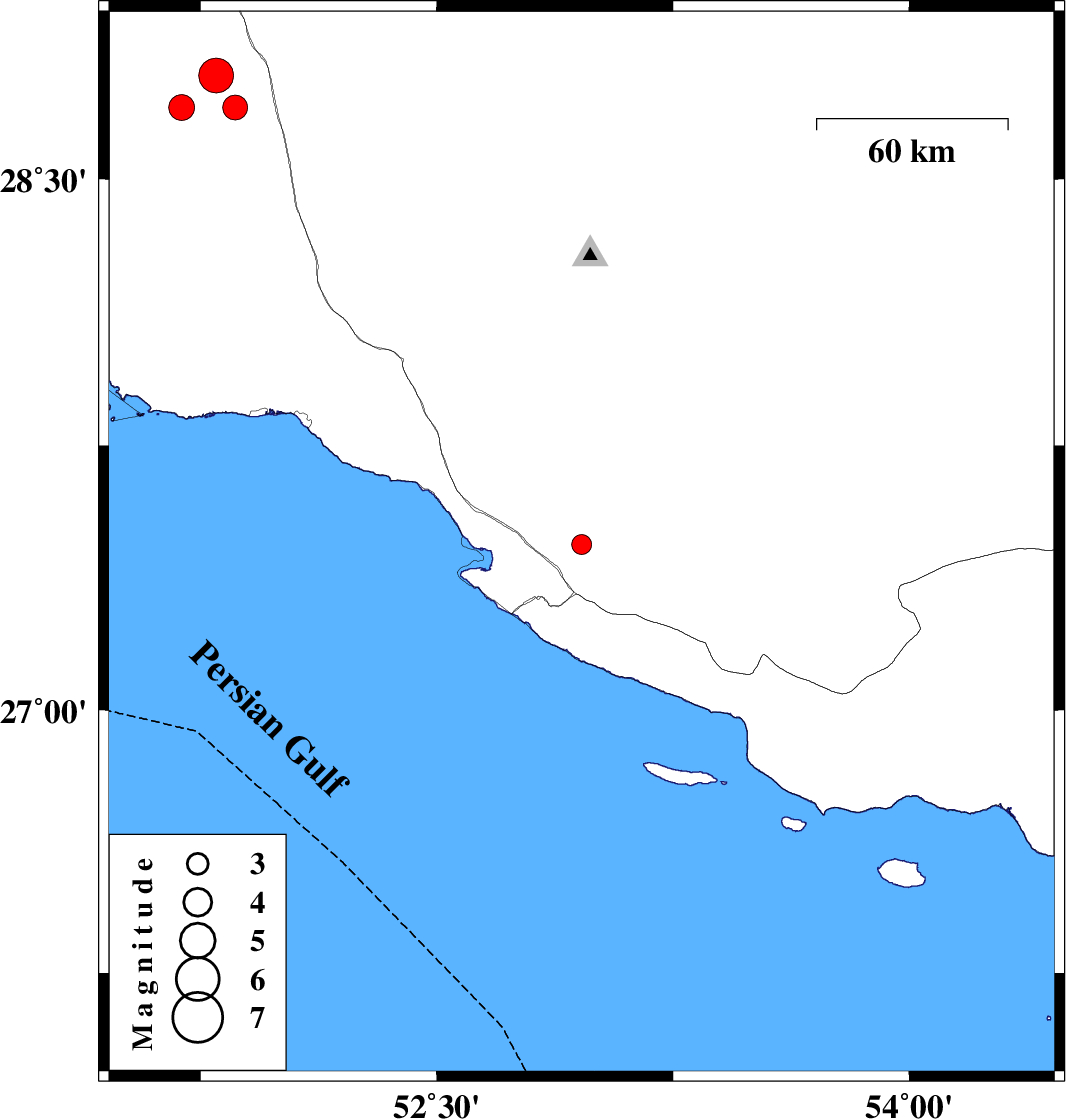 | 2015/01/10 | 17:03:07.3 | 20:33:07.3 | 28.79 | 51.8 | 19 | ML5 | Bushehr Province, 29 km West of Farashband |