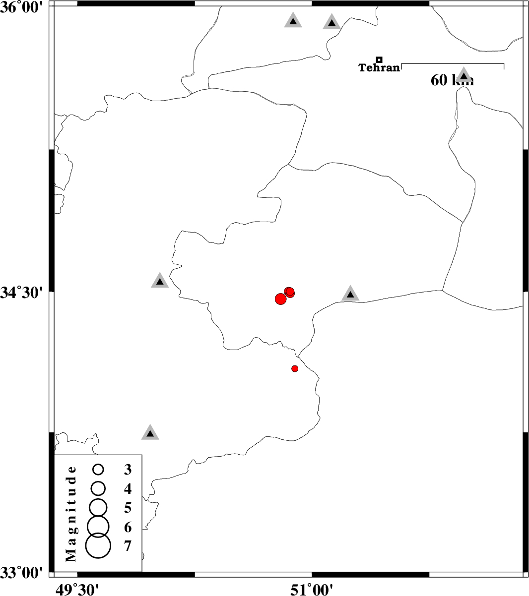| 2015/01/24 | 19:26:12.1 | 22:56:12.1 | 34.5 | 50.86 | 15 | ML2.3 | Qom Province, 16 km South of Qom | ||