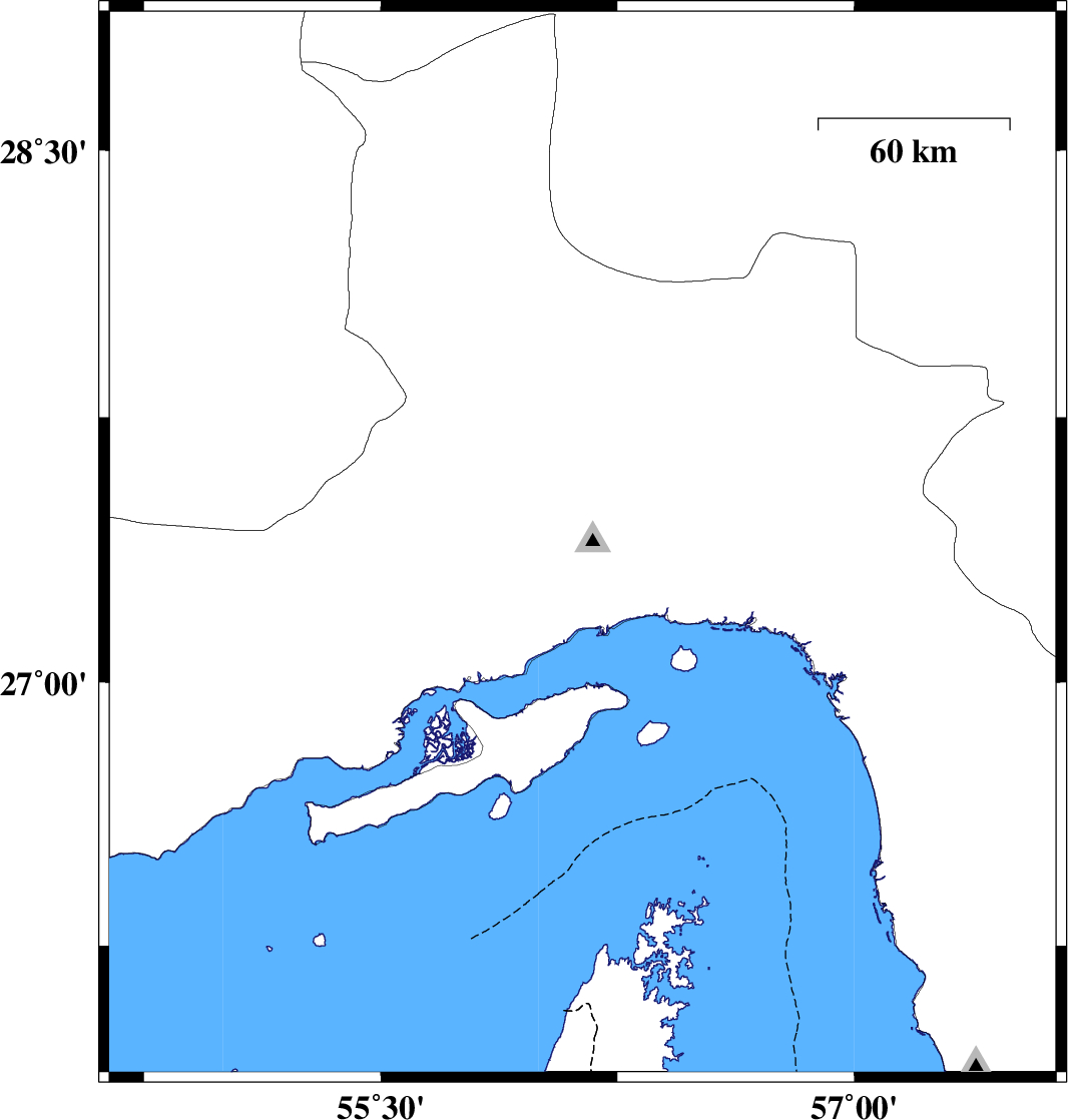 | 2015/01/25 | 20:11:19.3 | 23:41:19.3 | 27.39 | 56.14 | 14 | ML5 | Hormozgan Province, 27 km North-West of Bandar-e abbas |