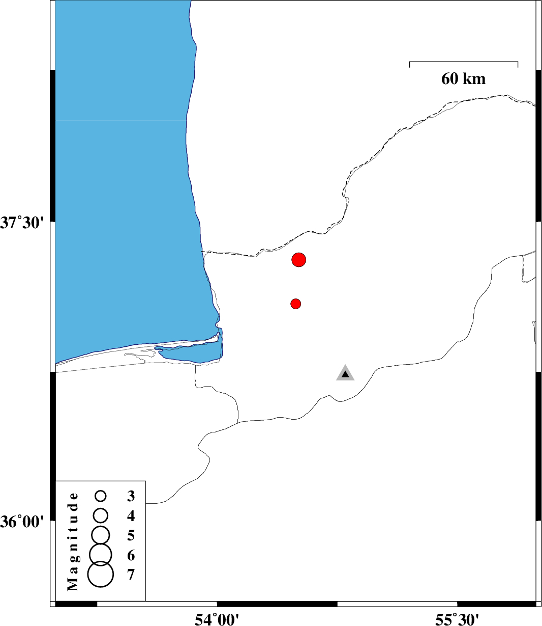 | 2015/01/31 | 18:06:00.2 | 21:36:00.2 | 37.31 | 54.51 | 18 | ML3.9 | Golestan Province, 33 km North of Aq Qaleh |